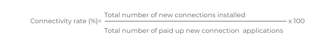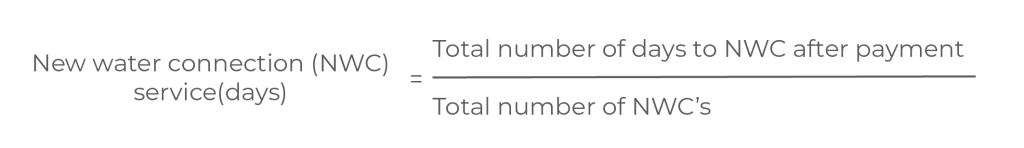 This also affects revenue collection. A utility wants to increase its customer base while sustaining good quality of its service delivery. It must look at how long it takes to respond once an application for a new water connection has been received. Also, they should check how long it takes from when the customer has paid for the new connection versus when the connection is installed. The key performance indicators used are; connectivity rate, new water connection service and response time to new water connection application. The indicators are calculated as follows: