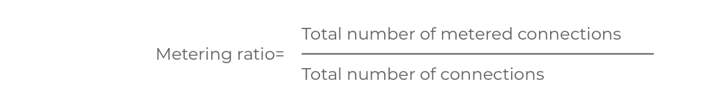 Of course, it is a “best practice” to have all customer connections with functional meters. Metering is a key component of management and non-revenue water. Metering ensures that accurate bills are sent to customers and water losses are easily identified. The metering performance indicator is the ratio of the total number of connections with installed and functioning meters to the total number of connections. It is calculated as: