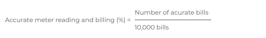 Yes. This is important as it can help to enhance billing accuracy, meter reading technology and minimise customers’ bill-related complaints. Water utility managers know that timely customer metering is a key component of revenue generation for operations. Meter reading should be done in a consistent manner. For instance, if the meter reading is done after 30 days, that level of frequency has to be maintained. This will help managers to check for accuracy before billing and that all metered connections are read. Unexplained high-water consumptions, low water consumption and zero water consumption can be checked before billing. This will also ensure that billing and bill delivery are also done on time. Therefore, the performance indicator should be accurate meter reading; and bill accuracy measures the number of error-driven bill adjustments per 10,000 bills issued during the reporting period which is expressed as: